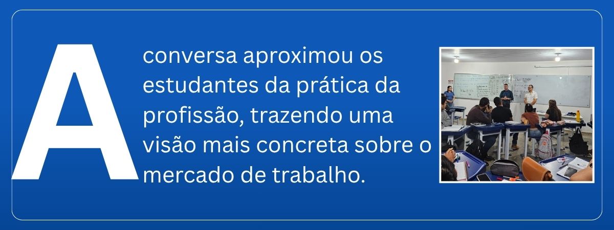 A presença do Conselho dentro da universidade contribui para ampliar o entendimento dos acadêmicos sobre sua futura atuação, além de incentivar uma formação mais consciente e alinhada com as exigências do setor.